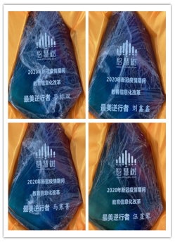 录课过程恰逢疫情,课程团队成员在认真防疫的前提下辛苦录课,得到了录课平台的高度认可,平台专门为课程团队颁发了“教育信息化改革先锋团队”证书和奖杯。