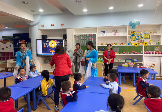 中秋节活动中,我们的同学穿上漂亮的衣服,装扮成嫦娥姐姐,进班给幼儿送月饼,深受小朋友的喜爱。
