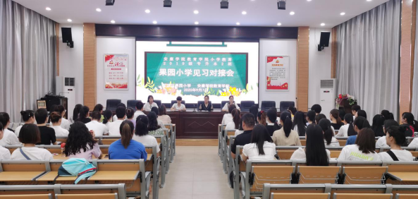 入校初,在果园小学会议室,学校领导班子与见习老师举行对接会。首先,王董事长发表讲话,表达了对见习生的欢迎,并为我们准备了午休教室,还提供了空调、饮水机,此外特别配备了一次性免洗消毒洗手液等防疫用品,为我们见习做了细致周到地安排。随后,钱主任就学校的规章制度、作息时间等学校常规事务向同学们做了简单介绍,增加了见习生们对学校的认识。见习生们都非常认真的倾听着,态度十分认真。 接着,带队指导教师陈佳老师表达了对果园小学的感谢,并对见习生提出了具体要求。紧张的对接会结束后,见习生跟随班级指导老师进班,与小员工一起参加了果园小学的升旗仪式。