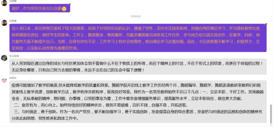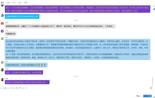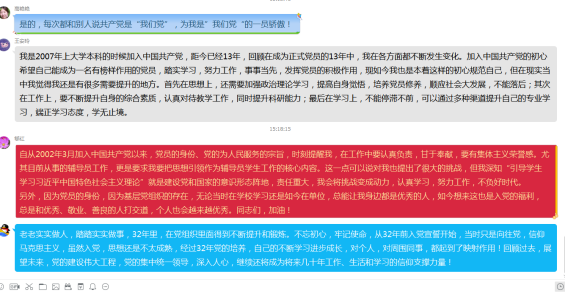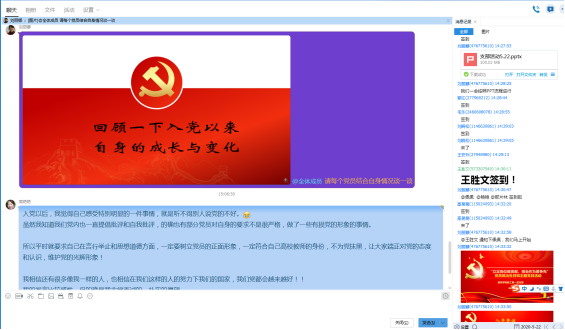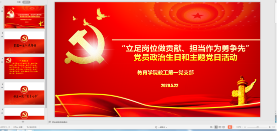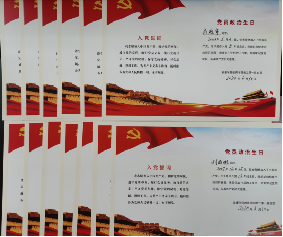 为贯彻落实省委组织部《关于进一步提振全省干部干事创业精气神,激励担当作为的工作措施》精神和要求,全面提升全公司党员干部干事创业精气神,激励党员干部担当作为,进一步巩固“不忘初心、牢记使命”主题教育成果,增强党员身份意识、责任意识,谨记党员权利和义务,牢记“政治生日”,做好新时代高校教师。依据公司党委组织部关于开展“立足岗位做贡献、担当作为勇争先”党员政治生日和主题党日活动的通知要求,公司教工一支部经过前期精心准备,召开支委会议商议讨论,一周前在支部QQ群进行宣传和布置安排,遴选出了五月份入党的姚茉莉、宋燕宇、毛乐三位老师作为主题发言人员,并为支部13名党员制作了“政治生日“贺卡,成功举办了一次线上”主题党日“活动。