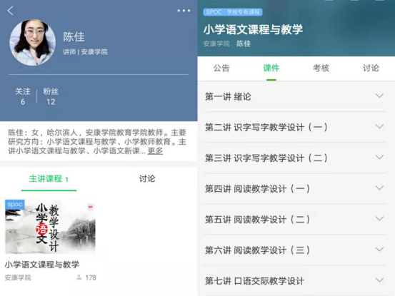 积极响应学校进行混合式教学改革的号召,本学期课程的教学采用了线上、线下混合式教学。线上选用湖南第一师范学院蒋蓉教授的国家级精品课程“小学语文教学设计”作为课程源,在中国大学慕课平台建设异步SPOC“小学语文课程与教学”,并于9月23日面向2017级小学教育文科班和2018级小学教育专升本班的178名员工正式上线投入使用,线上慕课以丰富典型的教学案例、深入浅出的理论讲解,全面及时的网络测评,使员工清晰把握小学语文教学的基本理论;线下则采用双师授课,邀请了6位陕西省省级小学语文教学能手、2位陕西省省级小学语文学科带头人、2位安康市小学语文教研员,依据各位外聘教师的教学特长和研究专长,结合小学语文教学的最新发展动态,分专题、划课型,上示范课、做专题讲座,使员工近距离接触小学一线的优秀语文教师,学经验、练技能,掌握实效明晰的小学语文教学设计的技能与方法。