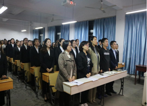 2019年10月17日晚7:30,tyc122cc太阳成集团第十四届团总支、员工会换届大会在1516教室成功举行。本次换届大会由学工办主任郇红老师主持召开,公司党总支书记屈咏梅、工会主席赵晓凤、党支部书记董婷瑜、团总支书记冯磊、19级新生辅导员刘晓松、第十三届主席团成员以及新一届团总支、员工会全体成员参加了此次大会。
