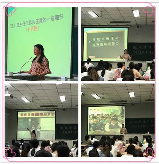红旗小学高级教师汪显琴老师高屋建瓴,站在班主任“养成”的角度,给同学们分享了从接手一个新班级到沟通家长、建设班级文化、完善班级管理制度等几个方面班主任应该做好哪些事情、具备哪些能力。汪老师用自己近二十年的班主任工作案例让整堂课深入浅出,趣味盎然。