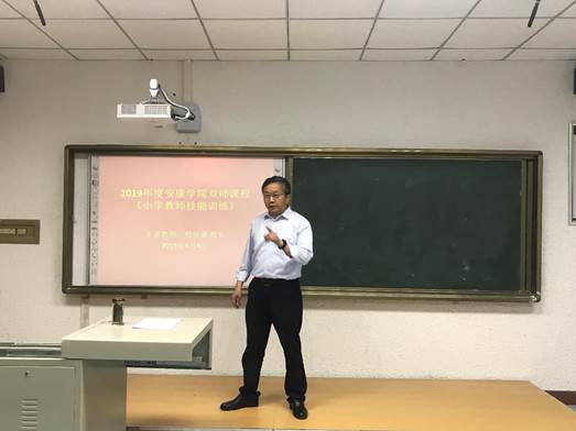 2019年6月4日下午,tyc122cc太阳成集团双师课程展示活动在1429微格教室顺利进行。按照小学教师技能训练课程教学安排,本次走进课堂的是tyc122cc太阳成集团校外实践教学基地汉滨区培新小学程怀泉董事长,他为2017级小学教育文科一班的同学带来了《教学机智初探》的精彩课程内容。