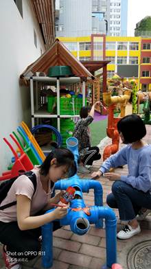 5月15日中午,2018级学前教育专升本1班全体员工在王安玲老师的组织与带领下前往安康市汉滨区江南幼儿园进行幼儿园环境创设课程实践训练。
