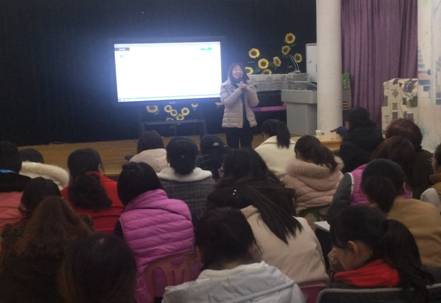 随后,陈教授在中心园区面向全体幼儿园老师开展了题为“为幼儿说故事”的讲座。在讲座开始之前,陈教授首先向大家介绍了台湾地区婴幼儿教育与大陆地区的主要差异。然后从“说故事的重要性”、“说故事的方法”等方面向大家分享了幼儿园语言教学方面的内容。陈教授是幼儿语言发展方面的专家,在讲座中深入浅出,与幼儿园教师积极互动,现场气氛热烈。给各位幼儿园教师带来很大的触动并留下了的深刻的印象。