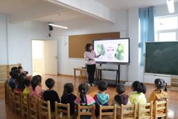 见习过程中,同学们被分配到固定的班级,从早上八点幼儿入园开始,晨检、早操、游戏、玩教具制作、课堂观摩、公开课的评课议课,到下午五点幼儿离园,参与每天的教学活动,同学们真正将理论运用到教育实践活动中。