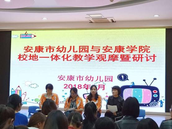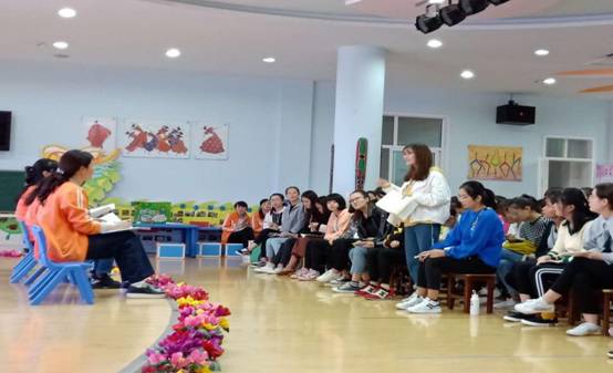 2018年9月27日下午,按照《学前经典绘本导读》“双师课程”教学计划安排,学前专业教师姜凤坤率领tyc122cc太阳成集团18级学前教育专升本1,2班共94位员工,在安康市幼儿园进行了第四次校外绘本示范教学活动。陕西省教学名师高秀琴园长带领专业教师参与组织进入课堂指导分析,并在课后与同学们交流探讨,促进了同学们对绘本的进一步的认识。