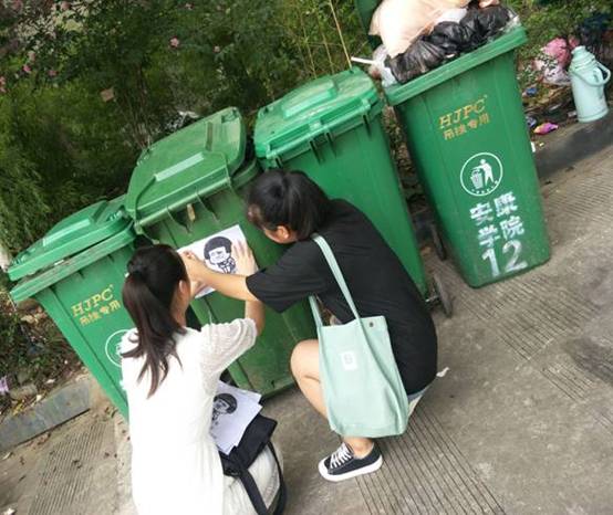 志愿者们将流行表情包制作成了活泼生动的校园环保宣传标语,并将标语进行了防水处理。然后以小组为单位将宣传标语贴在校园内各个角落的垃圾桶上。在这期间,志愿者们相互帮助,充分展现出公司员工之间的友爱互助,团结一致。最后,全体志愿者共同拍摄志愿服务宣传短视频。