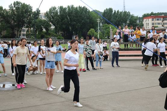 首先举行的是团体赛,拔河比赛中同学们个个卯足了劲力,场上气氛激烈,场下呐喊声、加油声此起彼伏,同学们个个热情高涨,比赛几度达到高潮。几番激烈角逐之后,17级学前单招班获得此次拔河比赛第一名,16级小学教育文科班获得第二名,17级学前教育本科班获得本次比赛第三名。班级跳大绳中同学们按照“8”字跳大绳的比赛规则参赛,哨声响起,同学们随着摇绳的节奏鱼贯而过,身轻如燕,密切配合,16级学前教育本科班、17级小学教育理科班、17级小学教育文科一班分别取得了前三名。接下来进行的是个人项目:一分钟跳绳和踢毽子,同学们争分夺秒,挥动跳绳,毽子飞舞,激烈角逐后,均取得不错的成绩。