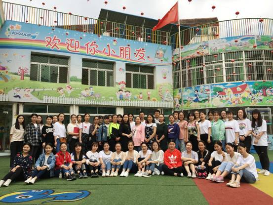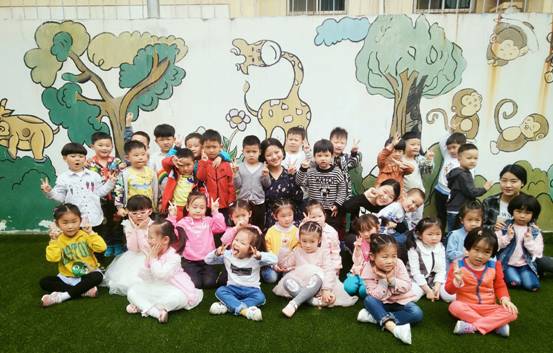 图为员工与见习班级幼儿合影