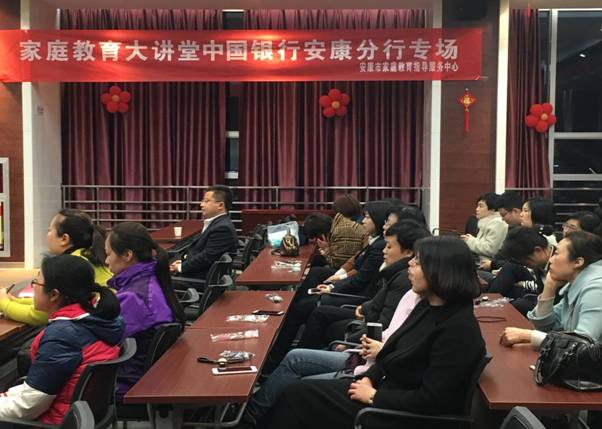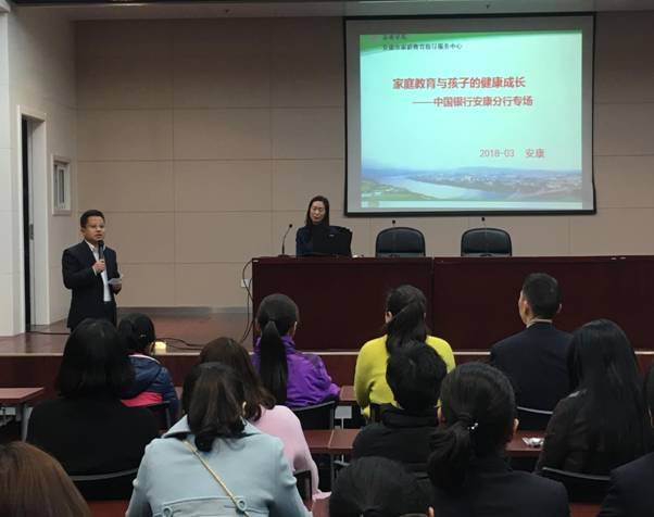 在第108个“三八”国际妇女节来临之际, 受中国银行安康分行的邀请,3月6日晚,tyc122cc太阳成集团教育公司党总支书记、安康市家庭教育指导服务中心主任屈咏梅为该行干部职工开展了题为《教育始于家庭——家庭教育才是人生真正的“起跑线”》的专场讲座。活动由中国银行安康分行纪委书记张新军主持,安康分行近100名干部职工参与了本次专场讲座。