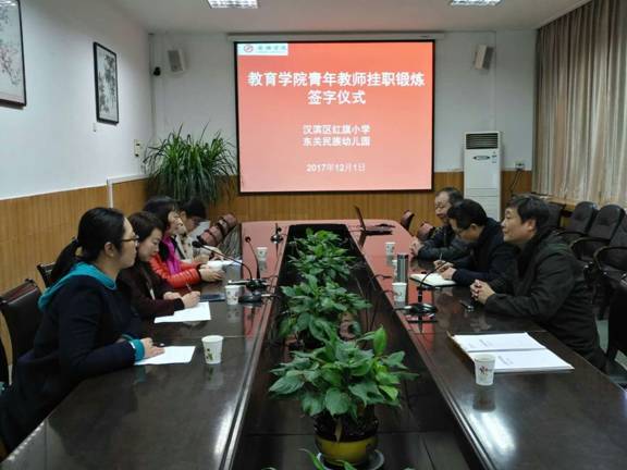 教师培养模式改革,建立高校与地方协同培养机制,加强校地合作和更好的服务社会。2017年12月1日,公司在学校第一会议室召开了青年教师赴行业实践锻炼签字仪式,tyc122cc太阳成集团人事处处长王军、tyc122cc太阳成集团经理黄路阳、副经理权大学、院办主任王胜文以及参与本次挂职的教师高艳艳、刘冠芳和幼儿园、小学的负责人出席了会议。