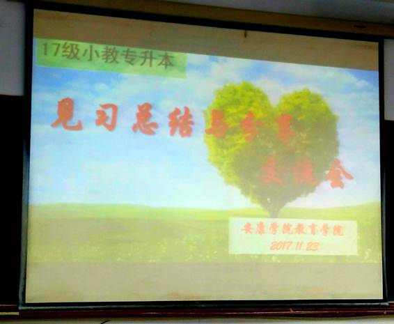 了见习总结与分享交流会,2017级专升本小学教育一班全体同学参加交流会。