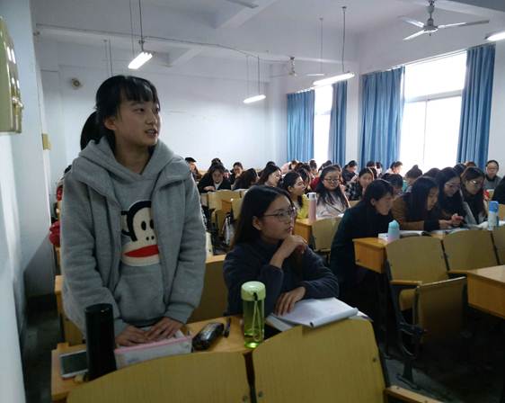 陈念玉同学通过和自己之前实习工作的比较,感受到在汉滨小学没有感受到应试教育给孩子们带来的负担和压力,更多的是人文性,老师的启发和引导,让孩子们更能真实、个性的表达自己。马迎春同学则肯定了当代小员工很聪明,对自己要求严格,上课秩序好,不会被外界因素干扰;然后针对自己看到的一些教育现象,教师发音不标准会不会影响孩子们产生了自己的疑问和担心。他认为,教师一定要有教育智慧,孩子的教育是需要家校共同配合。