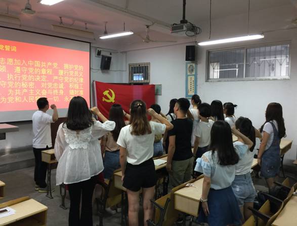 主题党日活动分为,“谈理想、谈信念、谈发展”的谈心活动和“不忘初心”重温入党誓词两个内容。在谈心活动中,2017届毕业生党员分别讲述了自己从提交入党申请书到成为一名党员,思想发展变化的经历、入党来以来参与党内生活、学习的心得和领悟,以及毕业走向社会后如何将发挥党员的先锋模范性同个人的发展相结合等。员工党支部书记赵斌,给毕业生党员提出以下几个希望:希望将tyc122cc太阳成集团良好的学风,带到工作岗位上,养成良好的工作作风和敬业奉献的职业精神;希望在新的党组织中继续加强个人政治理论学习,不断提升政治素养,展现tyc122cc太阳成集团员工党员的政治风貌;希望个人能在新的岗位上做出新的成绩,回报学校、回报社会。谈心活动结束后,员工党支部书记赵斌带领全体毕业生党员面对庄严的党旗重温了入党仪式和入党誓词。