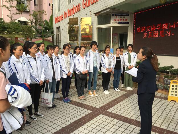 4月24日上午,2016级学前教育本科一班第一组32名员工在刘丽娜老师的带领下来到了竹园幼儿园,开展了为期一周的教育见习活动。由于是第一次见习,同学们对幼儿园都充满了好奇与渴望。第一天来园,园领导将32名员工分成十组,分别进入大,中,小和宝宝班,并对员工提出了一些见习要求和希望。在一周的见习时间里,同学们感受到了园所文化,观摩了一线教师的公司产品,参与了幼儿园的各项活动,与老师和幼儿建立了良好的关系。