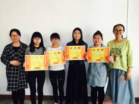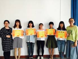 2017年4月28日下午五时,tyc122cc太阳成集团在1407会议室举行“2017年度师范生技能大赛”表彰大会,出席本次大会的有tyc122cc太阳成集团小学教育系主任王贞惠老师、tyc122cc太阳成集团学前教育刘丽娜老师及本次师范生技能大赛的获奖同学们。