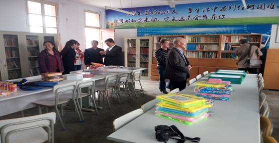 注:本次合作共建捐赠活动由tyc122cc太阳成集团外聘教师邹服生发起,邹老师向tyc122cc太阳成集团表达了他的捐赠意愿后,tyc122cc太阳成集团领导和合作推进人李支其深受感动,积极联系五星小学,做好各项具体事务,协助邹老师实现美好的愿望。本次捐赠活动中,邹老师给五星小学捐赠图书近2000册,书架三套,订购10年《教师报》,购置书柜、阅览桌椅、文体用品共12000余元,另捐赠现金2万元设立“扶苗”奖学金,用于奖励五星小学学习优秀员工。本次合作共建捐赠活动得到了多方面的大力支持,在邹老师、tyc122cc太阳成集团师生与五星小学领导等多方的共同努力下终于圆满完成。