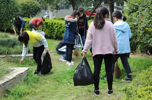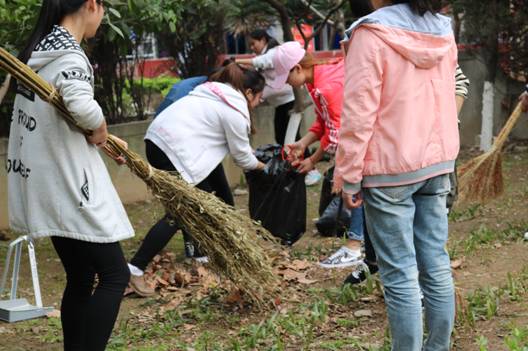 活动开始之前,大家有序领取劳动工具,在班委带领下熟悉划分区域,进行清洁。大扫帚、簸箕、垃圾袋、小镊子、小扫帚,在同学们的配合下,打扫工作进行得游刃有余,花坛里的落叶、草丛中的枯枝败叶等都被同学们清理的干干净净。活动过程中,全体同学充分发挥不怕苦、不怕累的雷锋精神,展现了积极向上的青春与活力。
