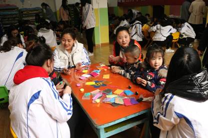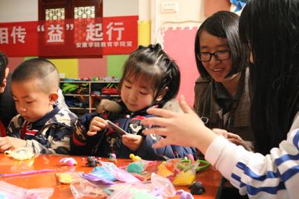同学们下午两点一同从学校出发,两点半准时到达英才幼儿园的指定教室。同学们充分利用自己在大学中学到的教学技能,对小朋友们进行了手工课指导,教小朋友简笔画、折纸、超轻粘土手工制作等。给小朋友的讲解生动形象,使小朋友在轻松愉悦的氛围中也能快速的掌握知识,并进一步培养了小员工们的学习兴趣。整个活动氛围欢快,获得了幼儿园师生的一致好评。