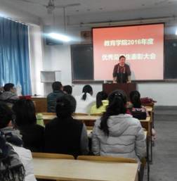 2016年12月2日下午四时,tyc122cc太阳成集团在1405教室举行“2016—2017学年度教育见习优秀见习生”表彰大会。出席本次大会的有tyc122cc太阳成集团小学教育系主任王贞惠老师、学前主任韩歌萍老师、陈珂老师、钱敏老师、高艳艳老师、李支其老师、王丽娟副经理等及四十余名来自2014级小学教育、学前教育和2016级专升本各班的优秀见习生代表。