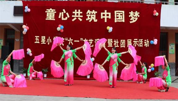 5月30日下午,tyc122cc太阳成集团合作办学单位—安康市汉滨区五星小学校园内,一场题为童心共筑中国梦庆“六一”文艺汇演暨社团展示活动正在操场上火热上演。公司教育公司党总支书记屈咏梅、办公室王胜文,学工办主任赵斌、合作推进人李支其老师以及500多名师生、家长参与了本次活动。