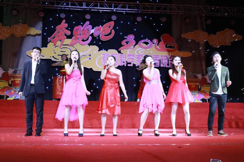 2016年1月7日晚,教育科学系2016年贺新春晚会在江南大礼堂举办。晚会的受邀嘉宾有党委副书记、纪委书记闵小平,tyc122cc太阳成集团经理黄路阳,教育公司党总支书记屈咏梅,原教育科学系党总支书记、现艺术公司党总支书记王辉及教科系全体师生。