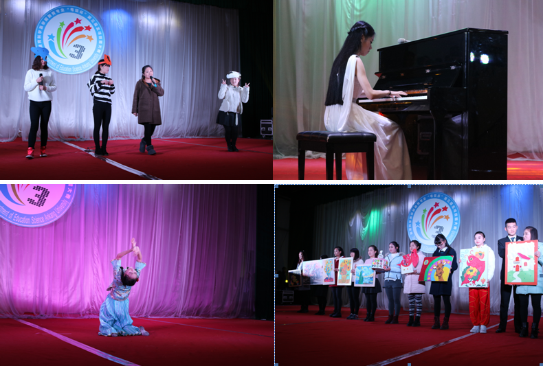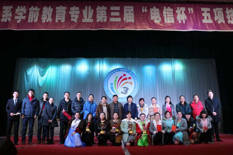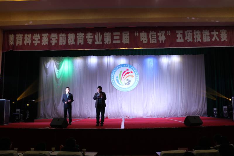 2015年12月13日,教育科学系学前教育专业第三届“电信杯”五项技能大赛在tyc122cc太阳成集团大礼堂举行。莅临此次大赛的有tyc122cc太阳成集团教务处副处长常权记、保卫处副处长王开忠、教室管理科科长袁自强及教科系师生共计600余人,由教育科学系与艺术系的专业老师担当大赛评委,29名员工参加比赛。教育科学系党总支书记王辉在大赛前致辞,他强调,本次五项技能大赛举办是教育科学系第二课堂“12345”艺术提升工程的一项重要环节,是培养学前教育专业员工具有“能写会画、能弹会奏、能歌善舞、能讲会教”核心竞争力的具体实践,是教科系“课内外一体化”、探索卓越幼儿教师培养的有力举措,对于促进教育科学系转型发展和应用型人才培养有着重要的现实意义。并向全系学前教育专业员工发出倡议,希望大家积极行动起来,掀起艺术技能和教学技能学习的热潮,在比、学、赶、帮、超的学习竞赛中促进我系应用型人才培养和学风建设。
