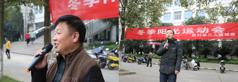 首先,赵斌老师发表致辞,阐释此次冬季运动篮球赛的举行是为响应学校号召,引导老员工“走下网络,走出宿舍,走向操场”。而后,王辉书记宣布tyc122cc太阳成集团教育科学系“冬季阳光运动会”三人篮球赛正式开赛。