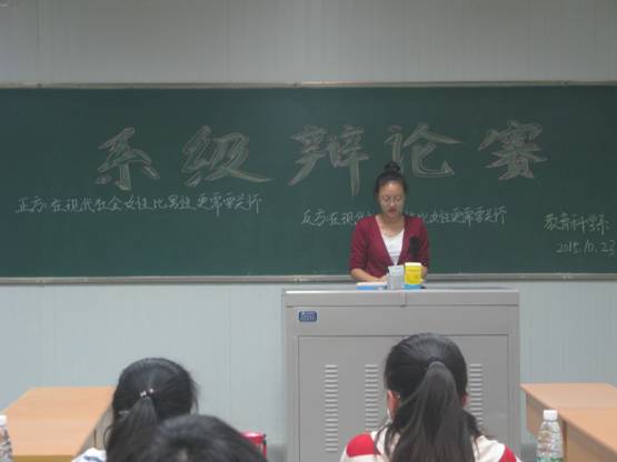 总结陈词是每一个辩论赛的核心,找出对方露洞,逐个击破,发表己方观点,坚持立场,让整个辩论赛得到升华。一番的唇枪舌战之后,评委点评,每一句都切中要点,直达问题根源。最终韩欢,朱沈伟,丁伟轶三人成功进入了下一轮的院辩论赛,此次辩论赛在一片掌声中落下帷幕。