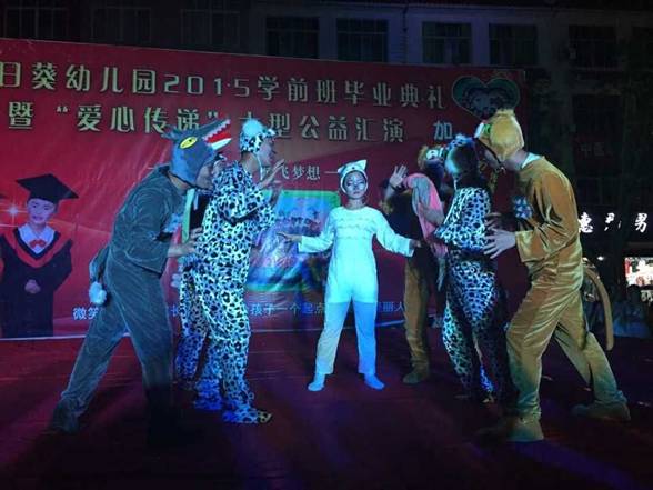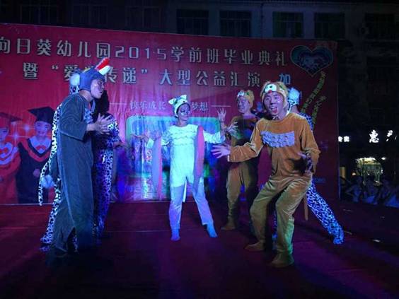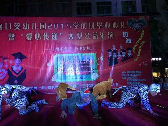 6月18日晚,由恒口向日葵幼儿园主办,tyc122cc太阳成集团教育教科系承办的“向日葵幼儿园2015年学前班毕业典礼”大型公益汇演在恒口中心广场隆重举办。莅临晚会的教育科学系老师有,学前教研室主任:韩歌萍,指导老师:宋燕宇,同时还有王胜文、姚茉莉、姜风坤、郇红、王兆娣、王惠、刘丽娜老师及向日葵幼儿园相关领导。