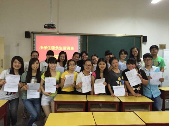 本次调查访谈提纲的设计是在王贞惠老师的指导下,同学们共同完成的,内容涉及“小员工的作业由谁辅导”、“周末时间如何安排“等十道问题和若干选项。整个访谈事先经过老师的访谈法辅导、实践安排,班委的分组和部署,井然有序的进行着。为消除小员工的紧张情绪,同时也为了使访谈更加顺畅,同学们利用在课堂上所学的技巧跟小朋友沟通,在短短的几分钟内,很多同学就已经和小员工熟络起来,使得小员工十分配合同学们的谈话。就在这样愉快轻松的氛围下,访谈进行了近四十分钟告终。而这次活动并非形式,同学们所得到的调查结果将由三个班共同汇总并将数据反馈给果园小学,以期了解小员工课余生活的现状、发现小员工课余生活存在的问题、丰富果园小员工的课余生活。