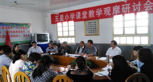 为了促进公司全面合作办学单位-安康市汉滨区五星小学教学质量的提高,推进双方青年教师的专业成长,5月14上午,汉滨区五星小学举行教学观摩研讨会,公司教育科学系主任黄路阳教授,办学顾问李国庆教授,副主任权大学副教授,李尚明教授、教学法青年教师、教科系外聘教师、合作推进人李支其以及五星小学全体教师参与了本次活动。