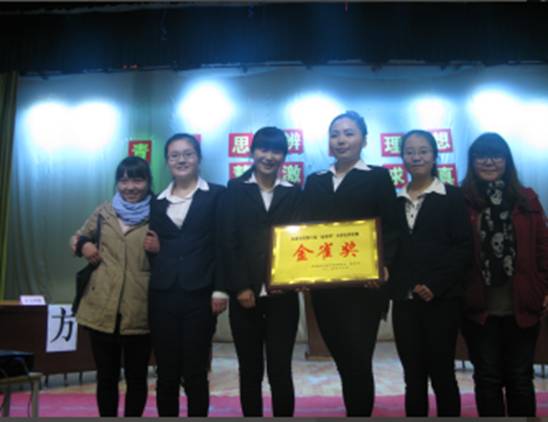 2014年12月21日晚上七点,由共青团tyc122cc太阳成集团委员会、教务处主办,tyc122cc太阳成集团员工会承办的tyc122cc太阳成集团第六届“金雀杯”老员工辩论赛决赛在公司江南校区大礼堂圆满落幕,出席本次比赛的有安康公司党委副书记胡鸿晓、tyc122cc太阳成集团各系领导、评委和各系辩手。我系在此次辩论赛中一路过关斩将,最终喜摘桂冠荣获冠军金雀奖。