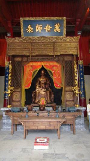 进入文庙,来到戟门。戟门有五间三个门,分别是中门和两扇侧门,其中两扇侧门是向游客开放的,而中门只有在大型活动或有员工考到了大学前十名才能打开,所以能跨过中门的人绝非等闲之辈。走过戟门后,第一个迎面而来的就是大成殿,它面阔五间、进深四间、宽26米,深18米。单檐歇山式建筑,建筑面积为463平方米。殿中央,是一座巨大的孔子像,他手握书卷,笑容可掬,慈祥的样子给人一种温暖的感觉。在头像上方写着“万世师表”四个大字。旁边还有孟子、曾子、子思、颜回这些文化名人。大殿东西两侧陈列的是“十二哲”的画像和牌位。画像上先贤们个个冕旒衮服,手持躬圭,神态恭敬,栩栩如生,惟妙惟肖。还有东西厢房,它们述说着文庙修建的时间和古时一些风流才子的奇闻趣事,和安康的教育发展史。