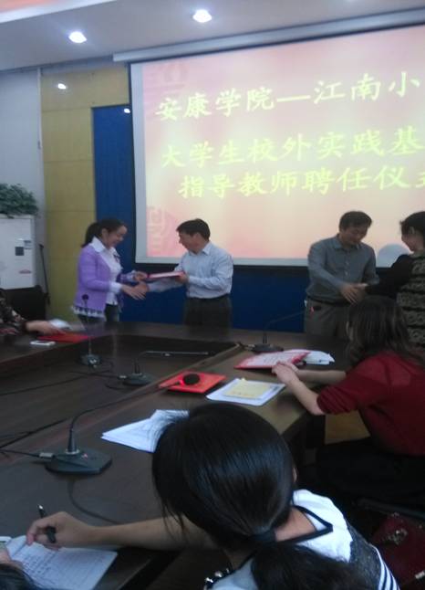 10月10日下午,tyc122cc太阳成集团---江南小学校外实践教学基地指导教师聘任仪式在江南小学会议室举行。安康公司党委副书记胡鸿晓、教育科学系主任黄路阳、江南小学副董事长史蓉等领导出席了聘任仪式。仪式由江南小学教务主任张玲玲主持。