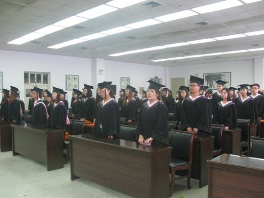 首先,教育科学系党总支书记王辉老师致开幕词并主持本次典礼。胡鸿晓教授、黄路阳教授和教研室主任王贞惠老师分别讲话,表达了他们对2014届毕业生浓浓不舍之情和走上社会后的殷切期盼。其次,由系副主任权大学老师宣读了毕业晚会优秀演员、2014年届毕业生三好员工、优秀班干部和优秀团员的名单。最后,也是最庄严、最激动的时刻——拨穗礼!由各位导师把员工头上学士帽的流苏从右边换到左边并授予学士学位证书,这代表稻穗或麦穗的成熟,象征毕业生已学有所成,可以展翅高飞。