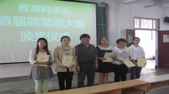 2014年5月30日下午,tyc122cc太阳成集团教育科学系首届简笔画颁奖仪式在一号教学楼1510举行。教育科学系党总支书记王辉老师,辅导员赵晓凤老师、董婷瑜老师出席了颁奖仪式。本次颁奖仪式由孟琪同学主持,王辉书记发表讲话,总结了前几次大型活动的意义,并且对获奖员工表示衷心的祝贺。