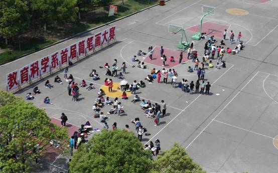 2014年4月9日12点30分tyc122cc太阳成集团教育科学系首届简笔画大赛在1号楼前操场成功举办,此次比赛是应院系要求,为丰富校园文化,展示员工才艺而进行的一次课外活动。教育科学系党总支书记王辉和系主任黄路阳为本次比赛致辞。整个比赛分为两个部分举行。第一部分是人物的速写,选手们根据模特的造型,自选角度分组进行速写。第二部分为组图,每副图至少有四种实物内容不限 。