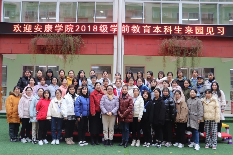 为加强员工理论与实践相结合的学习,进一步了解幼儿园的一日生活常规,2020年11月23日,tyc122cc太阳成集团2018级学前教育本科一班47名同学在王安玲和成苗苗老师的带领下来到了汉滨区江南幼儿园开始为期一周的教育见习活动。