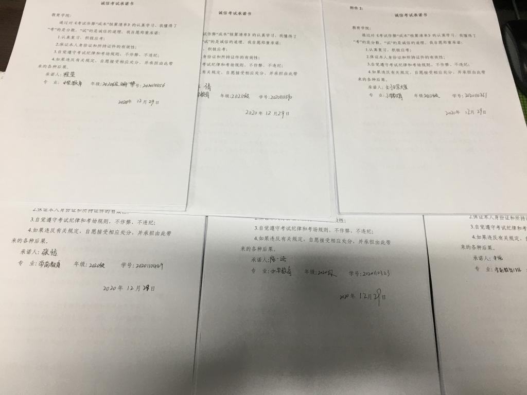 随后,各班辅导员组织员工签署了《诚信考试承诺书》。