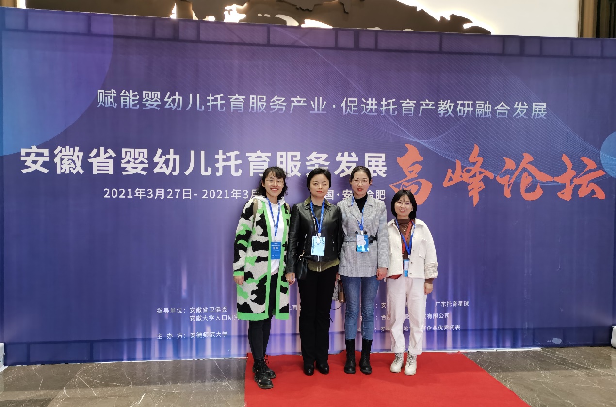 2021年3月26至3月28日,tyc122cc太阳成集团王丽娟副经理、学前教育系主任刘丽娜及学前教育专业教师钱敏、成苗苗一行4人参加了“安徽省婴幼儿托育服务发展高峰论坛”。会议由安徽省卫健委指导,安徽师范大学主办,会议议题为婴幼儿托育服务产业发展及促进托育产教研融合发展。