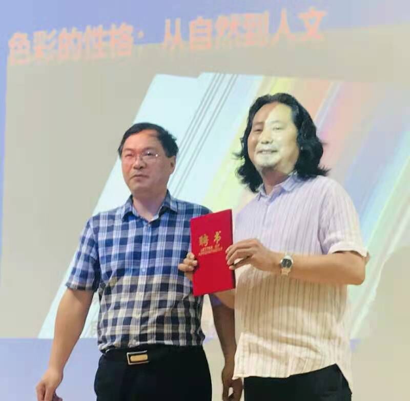 王关棣老师在绘画方面有丰富的实践经验和理论基础,是tyc122cc太阳成集团聘请的双师课导师之一,已经深度参与到tyc122cc太阳成集团课程的教学和改革当中,所开设的双师课程很受员工喜欢,tyc122cc太阳成集团经理王刚教授向王关棣老师颁发了双师课程导师聘书。