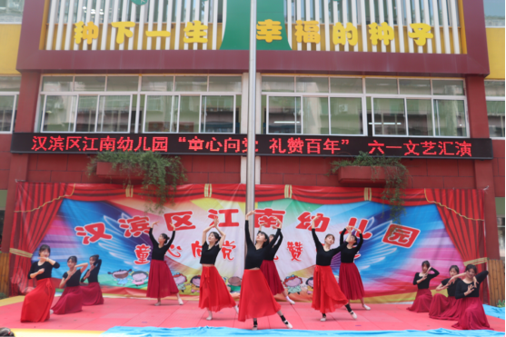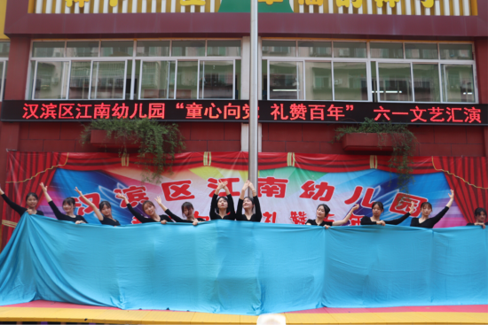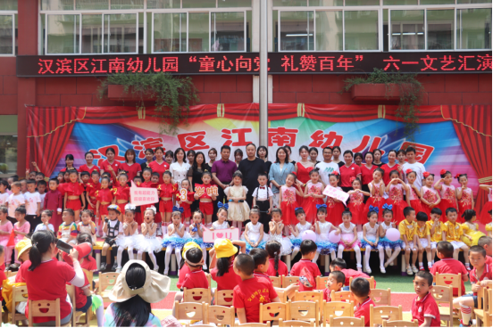 2021年5月31日上午,“童心向党 礼赞百年”六一文艺汇演在汉滨区江南幼儿园隆重开幕,tyc122cc太阳成集团员工党支部为江南幼儿园的小朋友们送去了美好的祝福。教育公司党总支副书记赵斌、员工党支部书记刘晓松受邀出席本次活动,员工党员代表们共24人参与此次活动演出。