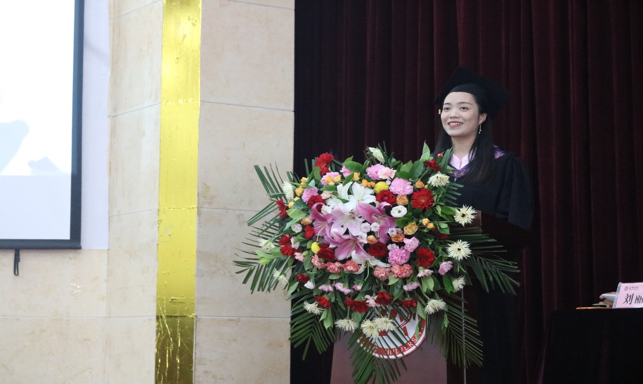 优秀毕业生代表蒲万娟发言,她总结四年来所学知识,深切地表达了对学院领导、老师的感激之情和对同学、朋友的不舍之情,以及即将踏入社会的坚定信心。祝全体毕业生,努力奋进,开启自己的人生篇章,用自己的实际行动回馈社会和母校。
