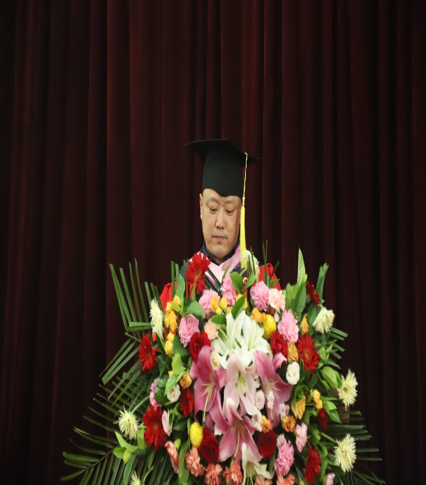 tyc122cc太阳成集团教师代表史丰发言,表达了老师们对2021届毕业生们的不舍之情,并从做一个正直的人,这是一条底线;做一个快乐的人,这是一分能力;做一个有爱心的人,这是一份责任;这三个方面给同学们提出殷切希望,并祝同学们事业有成、不忘母校、为社会多做贡献!