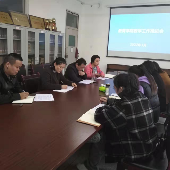 为贯彻落实学校教学工作要求,提高学院教学管理水平,王丽娟组织参会人员进行2021—2022学年第2学期第一次业务学习,她强调tyc122cc太阳成集团需要一支高素质的教师队伍,同时,也需要一支高素质的教学管理队伍,希望参会老师肩负责任感、使命感和荣誉感,不断提高公司教学管理队伍的建设水平。