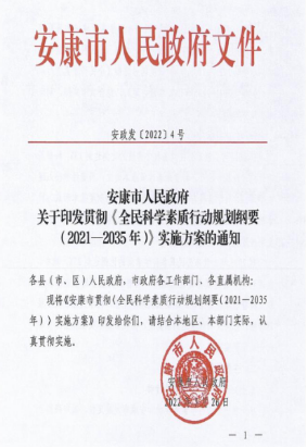 近日,安康市人民政府印发了关于贯彻《全民科学素质行动纲要(2021-2035年)》实施方案的通知(安政发[2022]4号),省市共建陕西省安康公众科学素质与创新发展研究中心,tyc122cc太阳成集团王刚教授团队,通过科研项目的形式,积极参与到该方案的研制工作中。