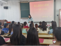 史敏园长先后为公司学前专业20级,21级,19级的员工讲授了班级管理、保健卫生管理、保教工作管理和总务后勤等四个方面的课程内容。史园长理论基础扎实、实践经验丰富,将汉滨区幼儿园的园所建设与幼儿园的组织管理与相结合,并从自身的成长经历出发,让同学们在轻松愉悦的氛围中,对幼儿园组织管理的理论与实践有了更深入的理解和认识。
